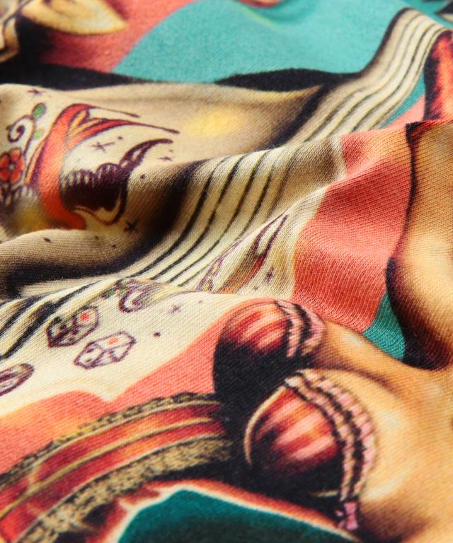 艶やかで官能的な女性のポートレートを大胆にプリントした、アート性の高い一枚。ビビッドなカラーが視覚的なインパクトをさらに引き立て、個性とエッジを加えてくれます◎