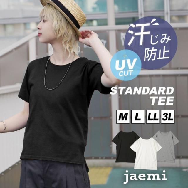 汗染み防止 汗じみ 汗ジミ 目立たない Tシャツ 半袖 カットソー レディース UVカット 紫外線 日焼け防止 撥水 綿100% コットン 機能性 吸湿 撥水 吸汗 速乾 汗対策 サラサラ 無地 3L jaemi ジェミ ブランド 女性 誕生日 彼女 妻