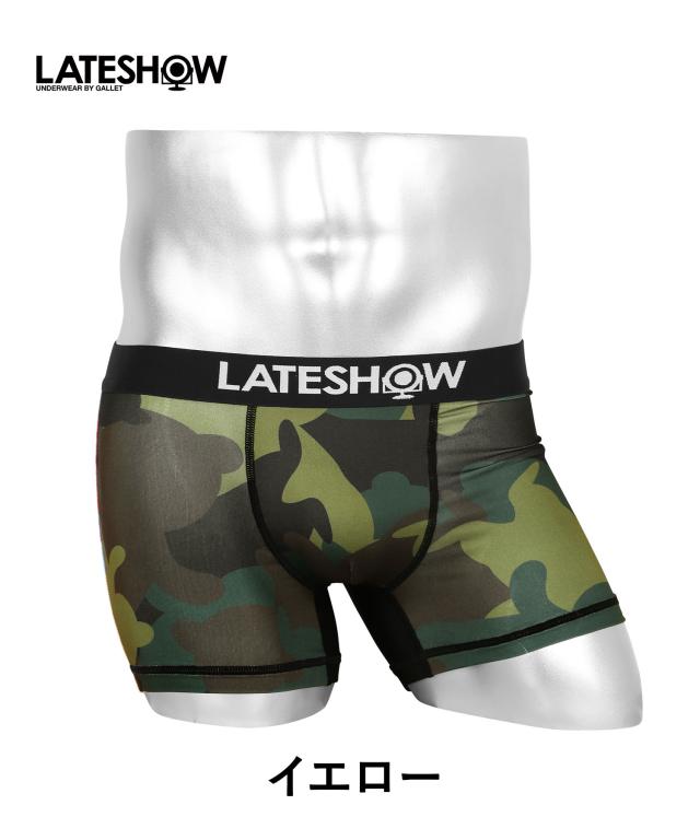 LATESHOW レイトショー ボクサーパンツ メンズ アンダーウェア 下着 速乾 ツルツル おしゃれ かわいい 迷彩 カモ柄 カモフラ ブランド おすすめ 人気 派手 男性 紳士 プレゼント プチギフト 誕生日プレゼント 彼氏 父 息子 ギフト 記念日 ボクサーブリーフ