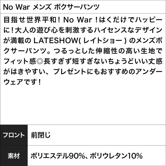 目指せ世界平和!No War!はくだけでハッピーに!大人の遊び心を刺激するハイセンスなデザインが満載のLATESHOW(レイトショー)のメンズボクサーパンツ。