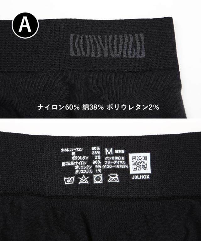 【A】ナイロン60%、綿38%、ポリウレタン2%