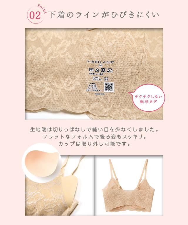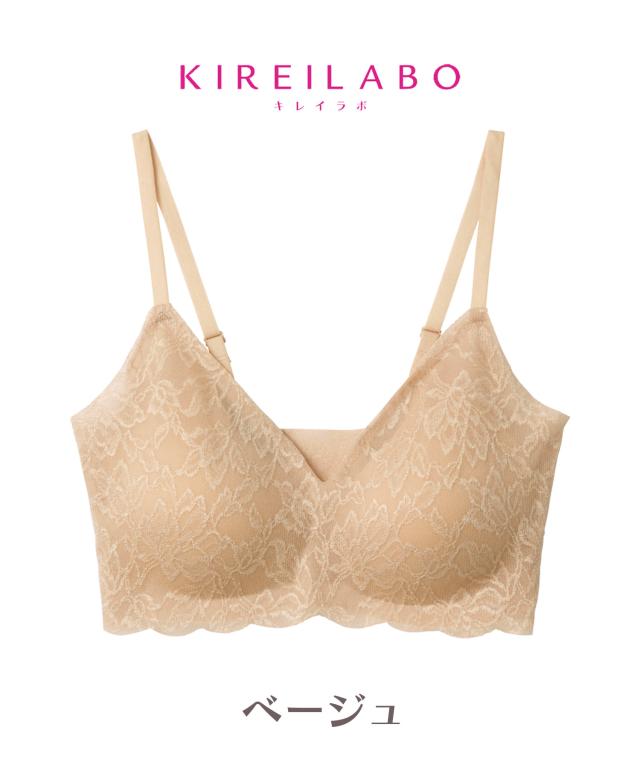 脇すっきり、胸の高さもキープしてくれるカットオフレースを使ったGUNZE(グンゼ)のKIREILABO(キレイラボ)ブラファンデレディースノンワイヤーブラ。