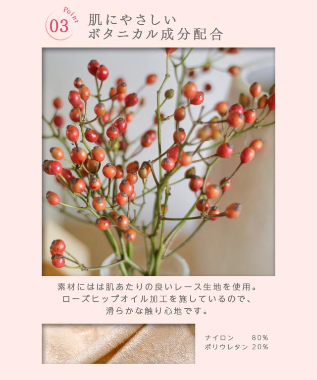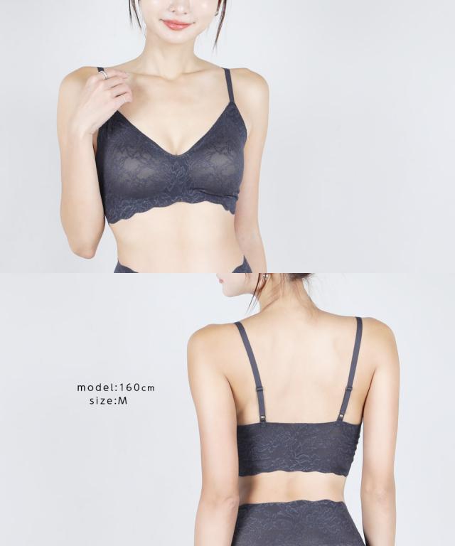 ストレッチレースのほどよいパワーがカラダにフィットしますが、肌への圧迫感は少なく、バストを脇からしっかり寄せてくれます。肌あたりなめらかなカットオフのストレッチレースがレース特有の凸凹を感じにくく、フラットな着用感です。