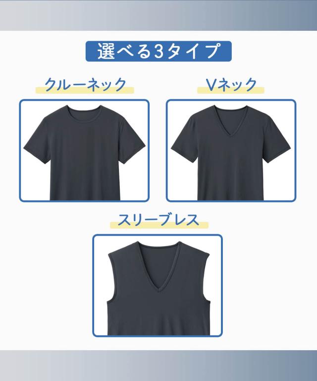 ベタつき瞬時にどこへやら。珪藻土の自然パワーに着想を得て、汗を瞬時に吸収し、素早く乾かす構造を再現。GUNZE(グンゼ)最高クラスの吸湿速乾テクノロジーアセドロンメンズインナーTシャツ。なめらかなレーヨンとドライ感の強いポリエステルを使用し、サラサラ、スベスベ触感が持続。糸の芯部に高い吸放湿性を発揮する物質を結合、さらに糸の間に隙間を作り、高い吸湿速乾機能を実現しました。クルーネック・Vネック・スリーブレスの3タイプから選べるのでシーンに合わせてそろえるのが◎汗ばむ季節をクールに過ごせる、夏に欠かせない機能性インナーです!