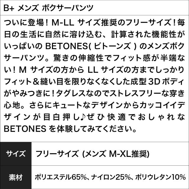 B+BETONES ビープラス ビトーンズ ボクサーパンツ メンズ アンダーウェア 下着 ロング丈 ロングボクサー 超伸縮 フリーサイズ シームレス プラスサイズ ブランド 男性 紳士 プレゼント プチギフト 誕生日プレゼント 彼氏 父 息子 ギフト 記念日
