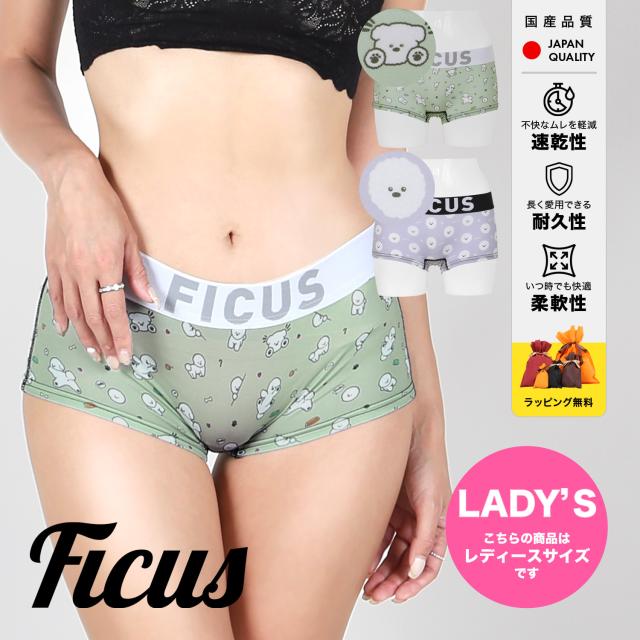SALE ツルツル ボクサーパンツ FICUS フィークス ボクサーショーツ レディース パンツ 犬 ビションフリーゼ アフロ犬 下着 速乾 当店限定 国産 ボーイズレッグ ブランド 女性 婦人 プレゼント プチギフト 誕生日プレゼント 彼女 母 娘 ギフト 記念日 ボクサーブリーフ
