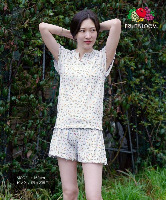 ルームウェア レディース FRUIT OF THE LOOM フルーツオブザルーム 綿 綿混 コットンストレッチ 部屋着 半袖 ショートパンツ パジャマ 寝間着 かわいい 花柄 ブランド 女性 婦人 プレゼント プチギフト 誕生日プレゼント 彼女 妻 ギフト 記念日