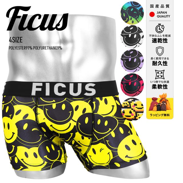 FICUS フィークス ボクサーパンツ メンズ アンダーウェア 下着 おしゃれ かわいい ツルツル 速乾 キャラクター キャラ ロゴ ワンポイント ブランド 男性 紳士 プレゼント プチギフト 誕生日プレゼント 彼氏 父 息子 ギフト 記念日