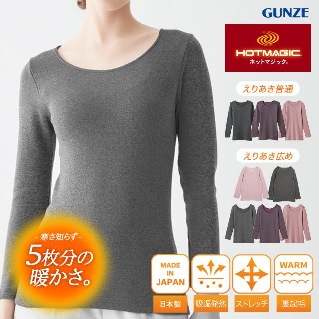GUNZE/グンゼ インナーシャツ レディース Lグッズ あったか 裏起毛 肌着 発熱 吸湿 防寒 インナー ホットマジック 長袖 ロンT 無地 ブランド 女性 婦人 プレゼント 誕生日プレゼント 彼女 妻 ギフト 記念日