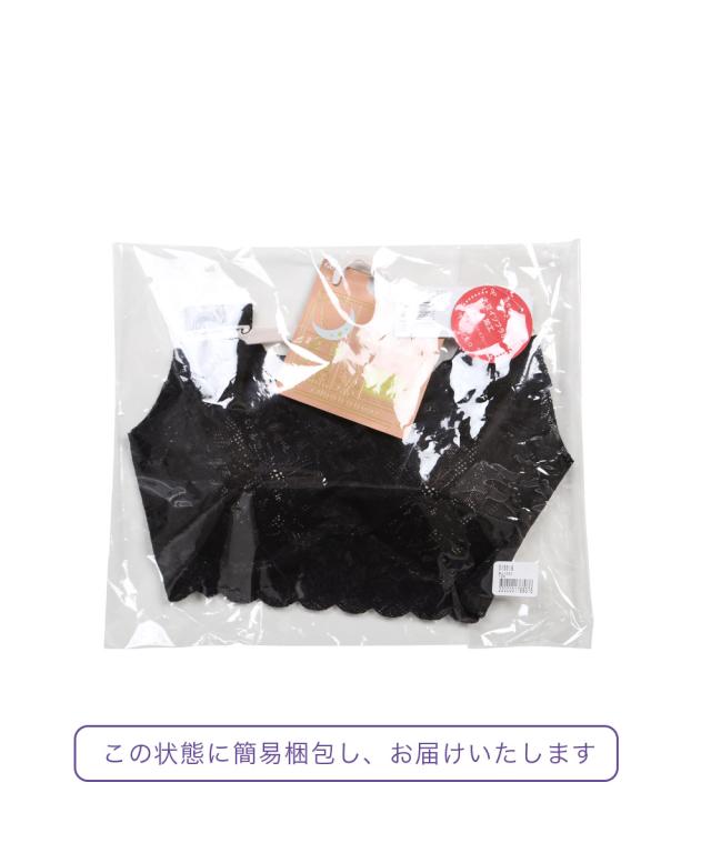 切りっぱなし部分は縫い目がなく、チクチク感を軽減。レースには大豆イソフラボン加工を施しているので、なめらかでやさしい肌あたりです。