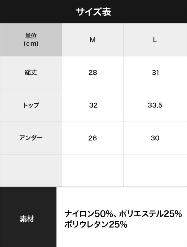 ナイロン50%、ポリエステル25%、ポリウレタン25%