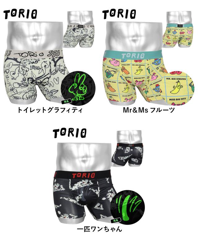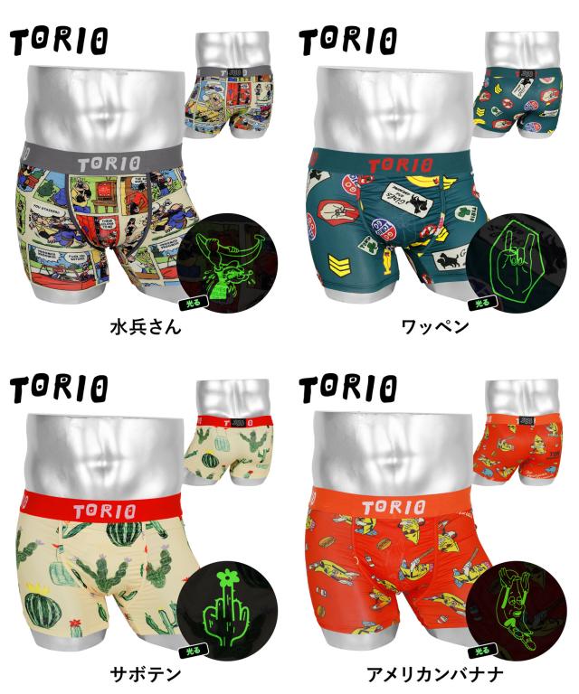 メール便 トリオ TORIO ボクサーパンツ メンズ アンダーウェア おしゃれ かっこいい ツルツル おもしろ 蓄光 光る 芸能人 愛用 フード フラワー 花柄 キャラクター キャラ アニマル柄 動物 ワンポイント ブランド 男性 彼氏 父 息子