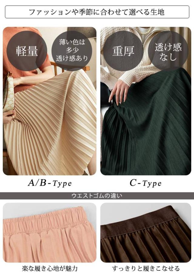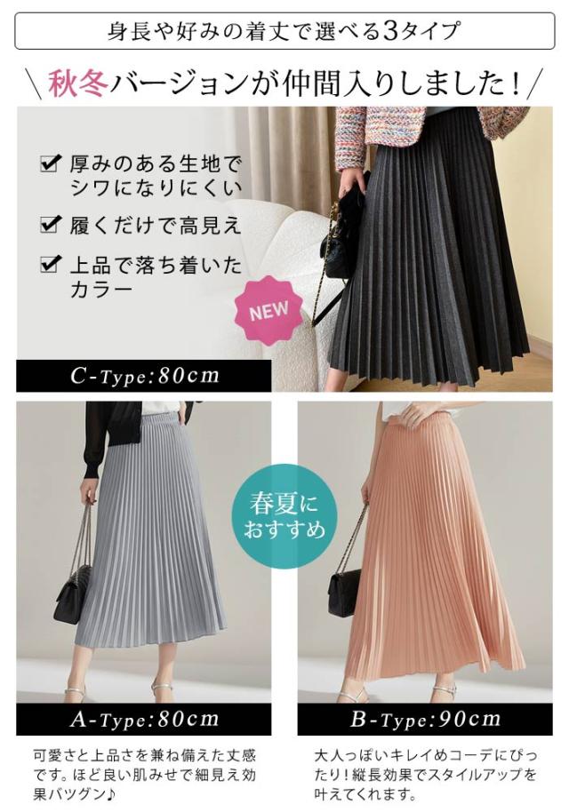 プリーツスカート レディース 秋 冬 ボトムス スカート 人気 Aタイプ(着丈80cm) Bタイプ(着丈90cm) Cタイプ(着丈80cm) ホワイト ベージュ イエロー ピンク ブルーグレー ライトグレー ダークグリーン ネイビー ボルドー ブラウン ダークグレー ブラック