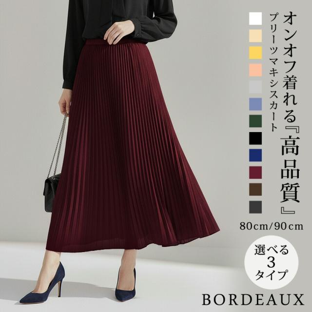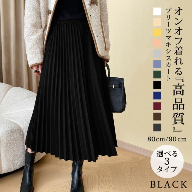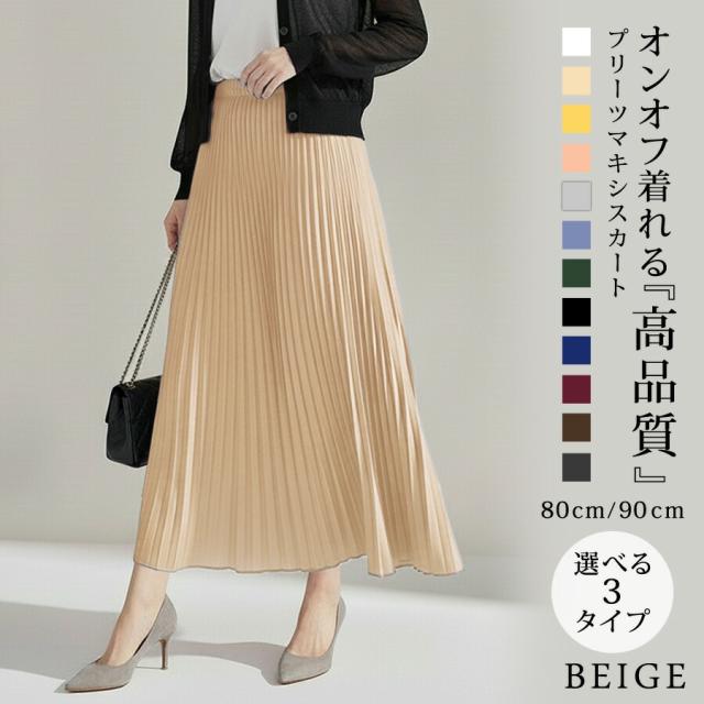 プリーツスカート レディース 秋 冬 秋冬 黒 スカート ロングスカート フレアスカート マキシスカート プリーツ ミモレ丈 ロング Aライン カジュアル 通勤 きれいめ 低身長 高身長 オフィスプリーツスカート レディース 秋 冬 ボトムス スカート 人気 Aタイプ(着丈80cm) Bタイプ(着丈90cm) Cタイプ(着丈80cm) ホワイト ベージュ イエロー ピンク ブルーグレー ライトグレー ダークグリーン ネイビー ボルドー ブラウン ダークグレー ブラック