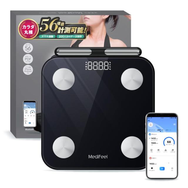 Medifeel ホワイト 体組成計 56項目 スマホ連動 体重計 体脂肪 体重/筋肉量/皮下脂肪率/内臓脂肪/体内水分率/タンパク質量/体細胞量