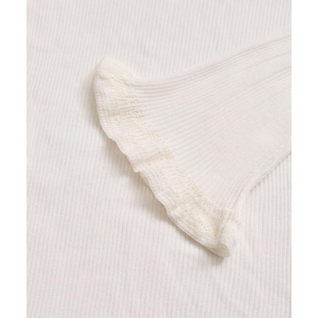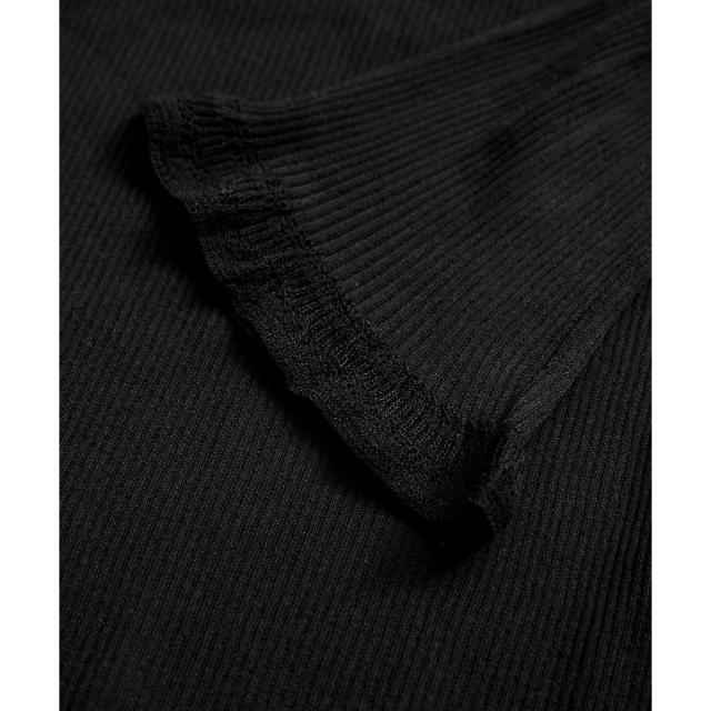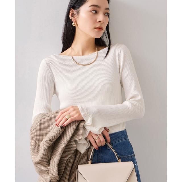 一辺倒になりがちなニットインナーですが袖口にレース編みで切り替えることで華やかさをプラス。身体に沿うシルエットですが伸縮性がありキレイ目な女性らしい印象に。首元の形も広めに設定しているのでデコルテをキレイに見せます。カーデなどのインナーとしてはもちろん、1枚着としても着回しがききます。