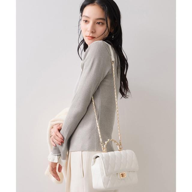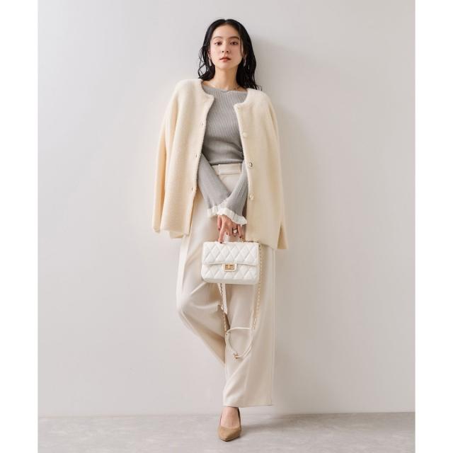 ドライタッチなリブニットで縦のラインを強調します。柔らかく伸縮性がある素材感です。