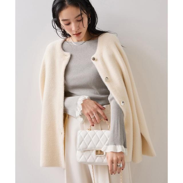 ボディはベーシックなニットなのでオンオフ着まわせるのが嬉しい1枚。カーデやジャケットのインナーにして袖口からレース編みを見せるのがおすすめです!
