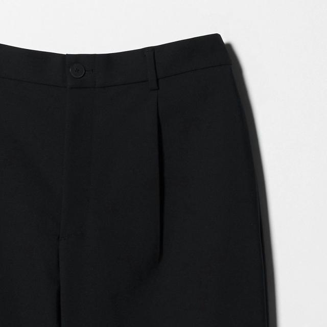 ストンと落ちるワイドシルエットをベースに、わずかなテーパードを効かせることで、すっきりとした印象に。