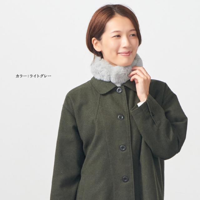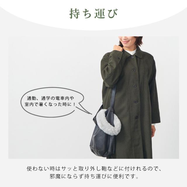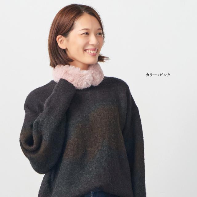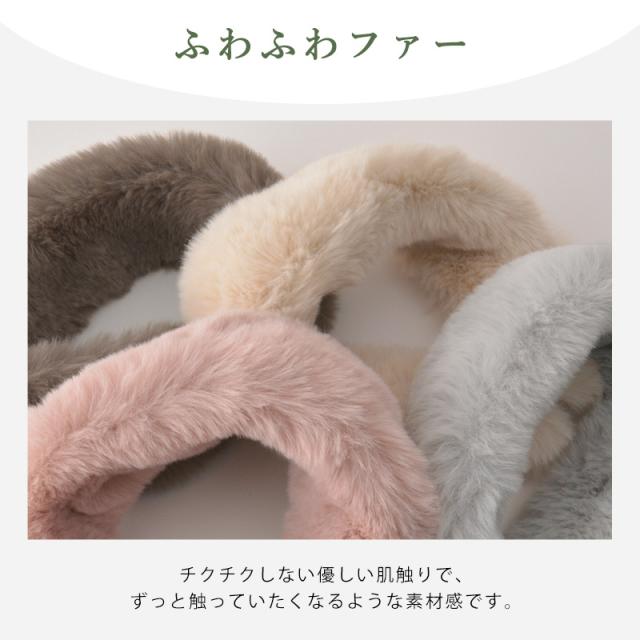 首にフィットするサイズ感でふわふわファーが防寒もなります。