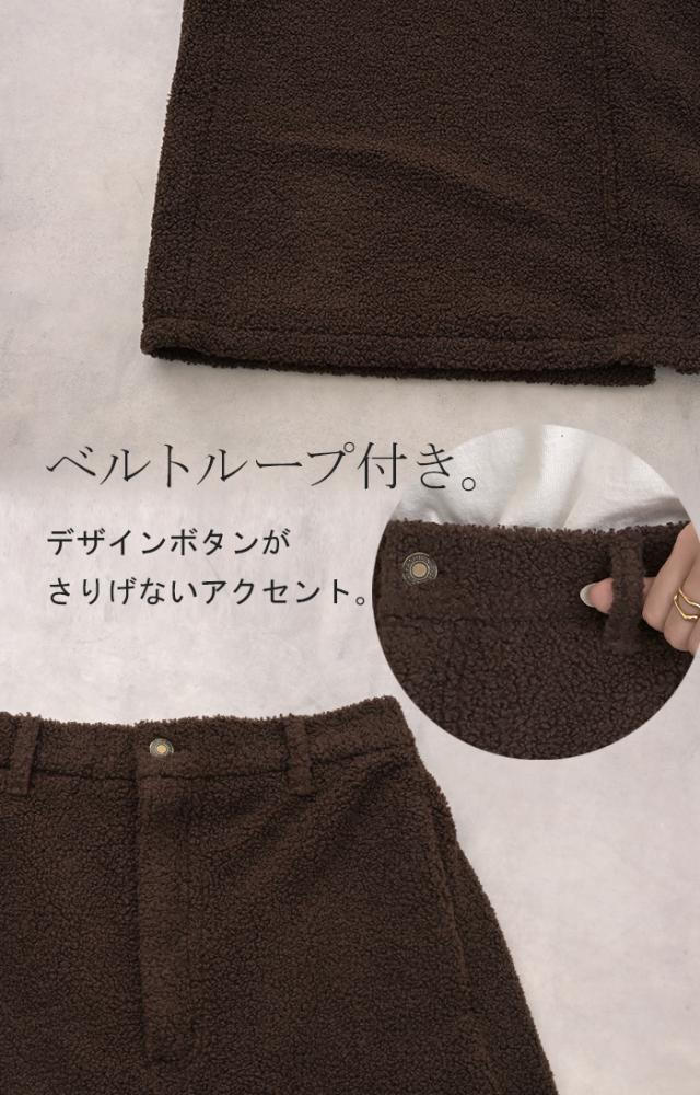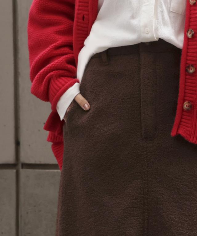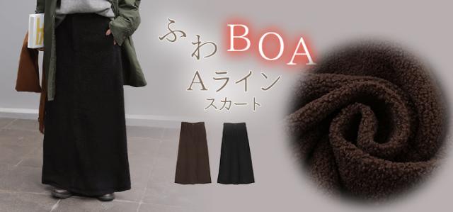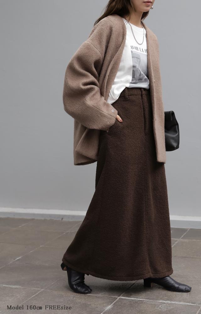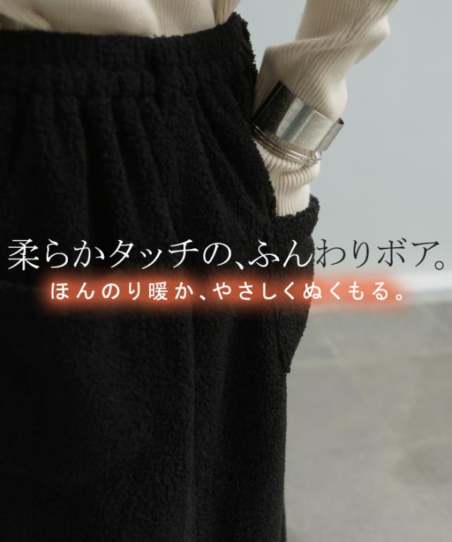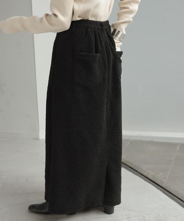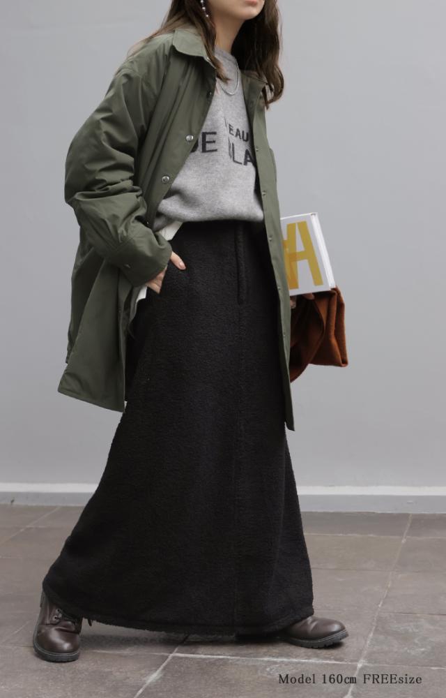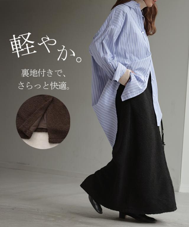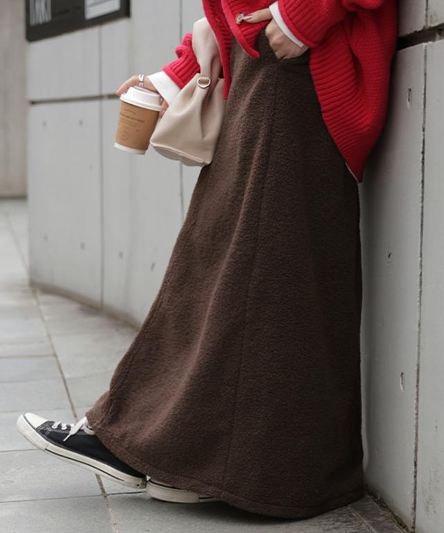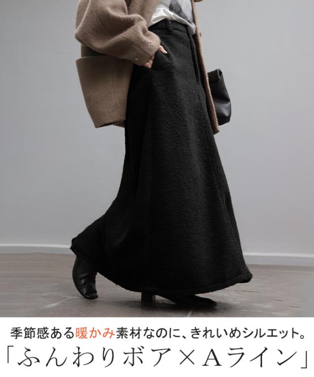 やわらかいボア素材が生み出す立体感が特徴的なAラインスカートです。