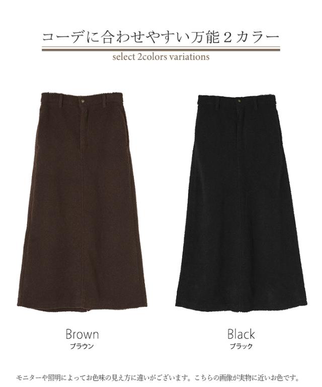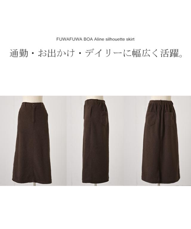 2025AW新作 スカート ボア ロング Aライン レディース ロングスカート ボトムス ボトム 軽量 軽い あったか フレア フレアスカート マキシ マキシスカート 無地 長い ウエストゴム ゆったり きれいめ ハイウエスト おしゃれ 黒 ブラウン 秋 冬 HUG.U