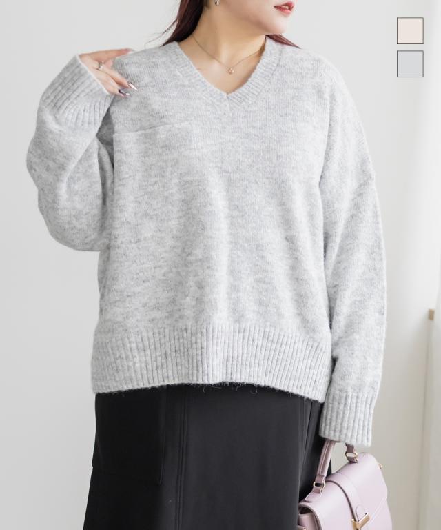 大きいサイズ/レディース/3L/4L/ポケット付きアルパカタッチニット