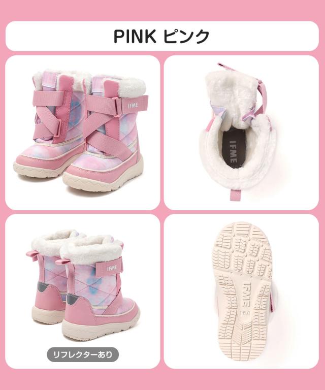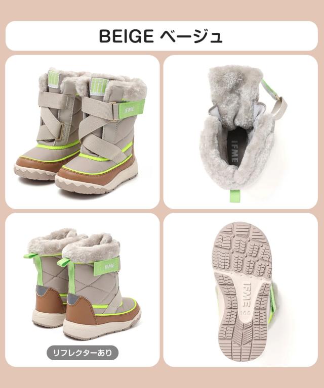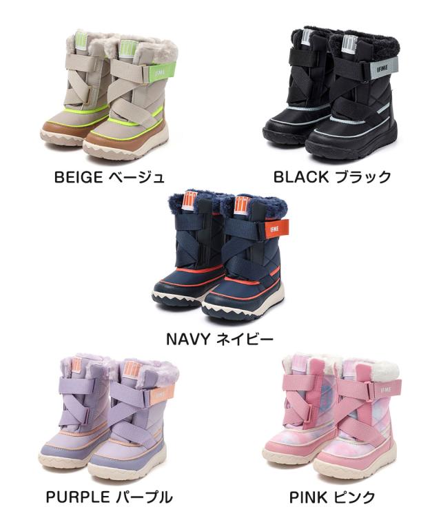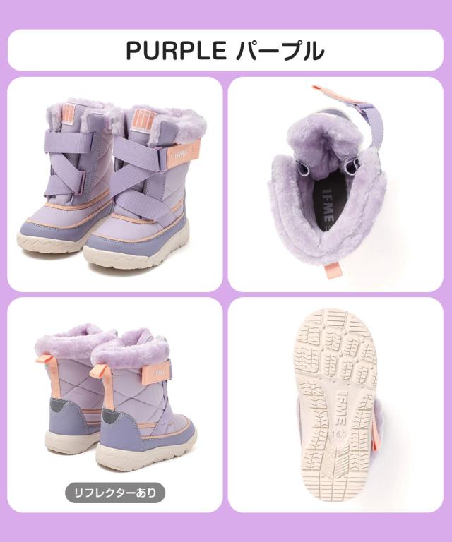 IFME キッズ スノーブーツ キネティックベルト 赤ちゃん 簡単着脱 撥水 防滑 防寒 軽量 あったかブーツ 子供靴 ふんわりボア 保温 15-19cm 雪遊び 滑りにくい 通園 保育園 冬用シューズ 男の子 女の子 ベージュ ピンク パープル イフミー 20-5816