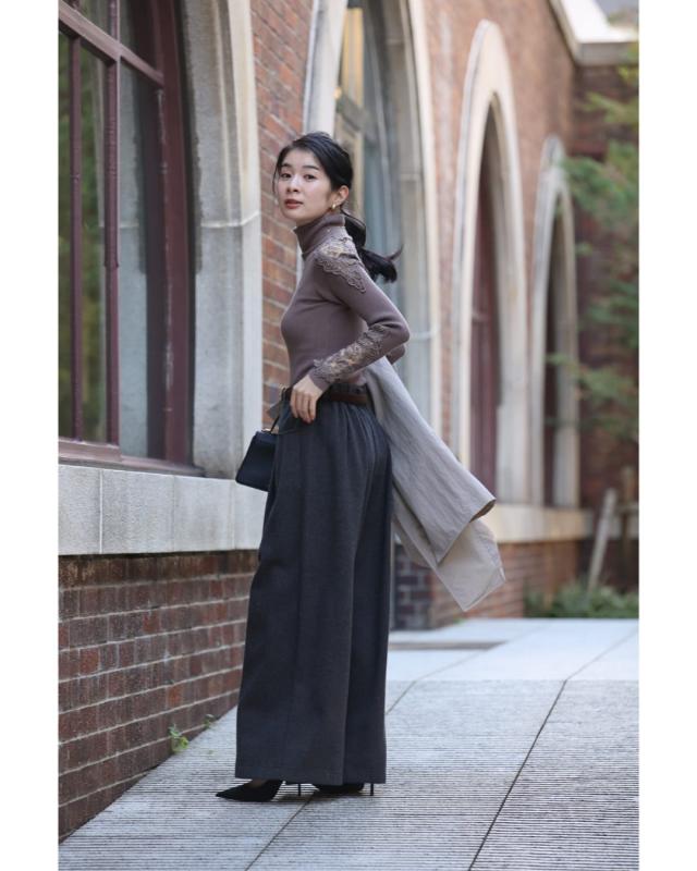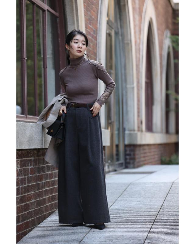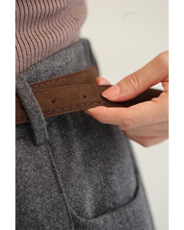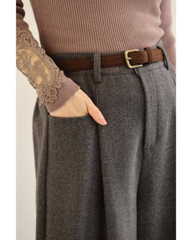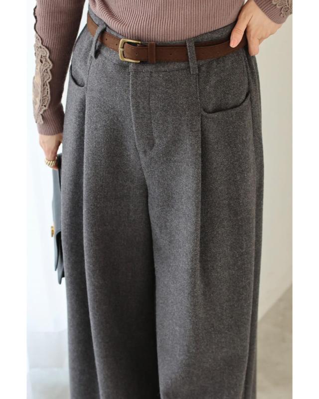 新作11月28日 美シルエットのウール調ワイドパンツ(ベルト付き) cawaii wkj00181 S~M対応 フルレングス ウエストゴム 暖かい 美シルエット グレー オシャレ 個性的 大人可愛い エレガント 上品 秋服 冬服 レディース ファッション ミセス 30代 40代 50代