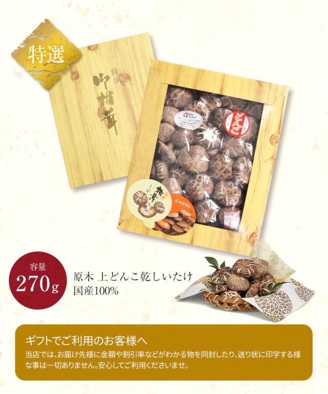 大分県産 原木椎茸 ギフト 上どんこ 270g 国産 御椎茸 しいたけ 椎茸 どんこ 乾しいたけ 乾椎茸 干ししいたけ 干し椎茸 シイタケ 大容量 肉厚 原木 原木栽培 乾燥しいたけ 乾燥椎茸 きのこ キノコ 茸