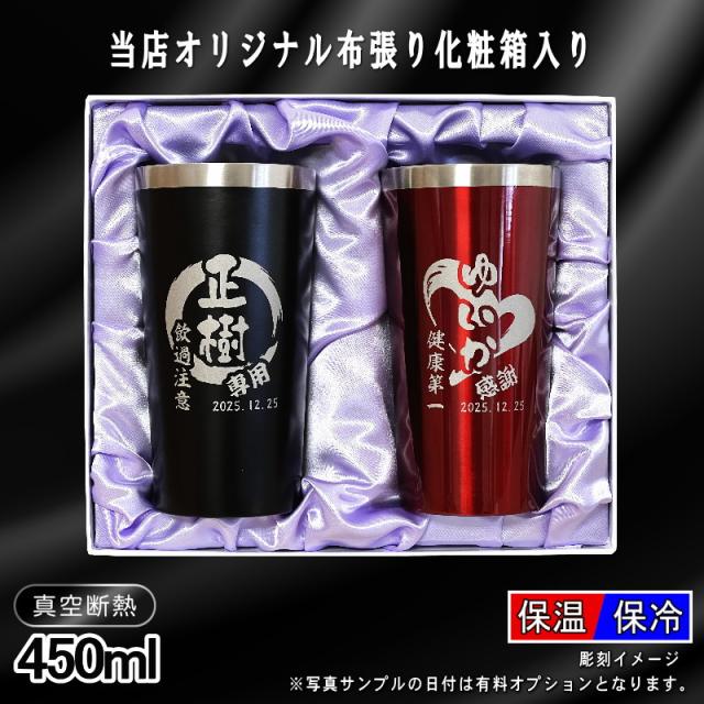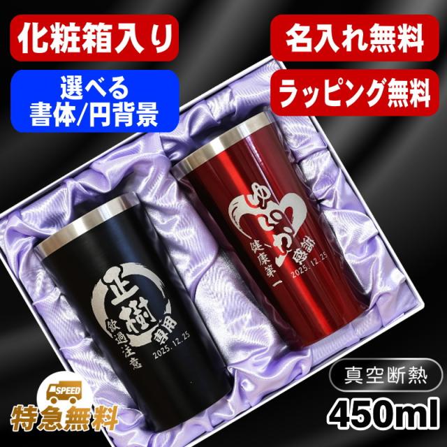【化粧箱入り】名入れ タンブラー ペア 名前入り プレゼント 真空断熱 保温 保冷 ステンレス 彫刻 刻印 グラス コップ 父の日 母の日 還暦祝い 退職 誕生日 結婚祝い ビールグラス ネーム入れ 男性 女性 バースデー ギフト 送料無料 450 ml 黒 赤 セット 円背景 EH1