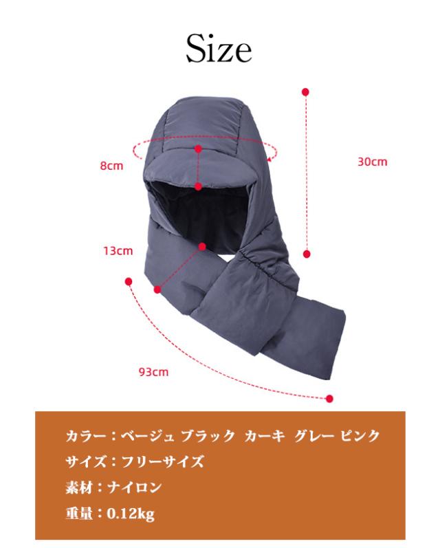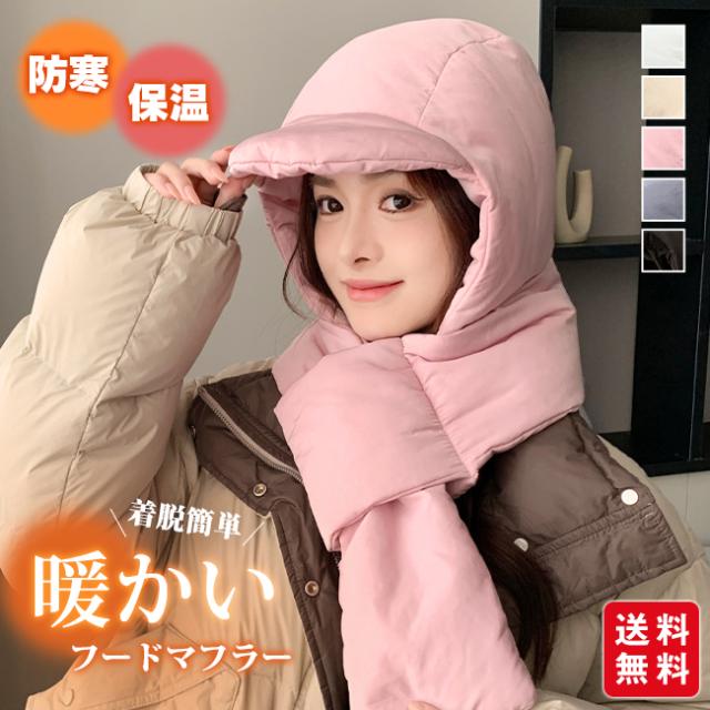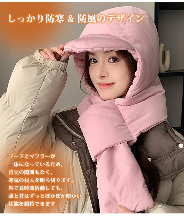 フードマフラー 中綿 フード付き 温活 防寒 レディース 保温 あったか かわいい ネックウォーマー 寒さ対策 防寒 暖かい 軽い ネックウォーマー 帽子 耳あて 冬 柔らかい 洗える おしゃれ 通勤