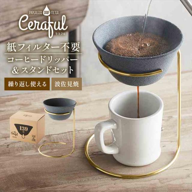 セラフルスタンドセット 紙フィルター 不要 ドリッパー コーヒーフィルター 波佐見焼 日本製 コーヒードリッパー フィルター不要 ペーパーレス おしゃれ シンプル セラミック 陶器 水洗い 手入れ簡単 エコ 誕生日 ギフト プレゼント ボックス付き