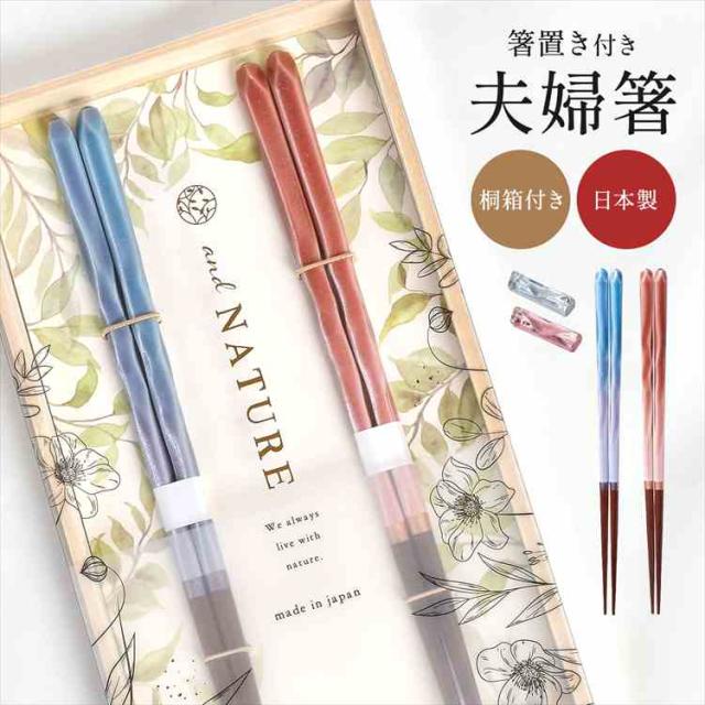 夫婦箸 箸置き セット イシダ and NATURE アンドネイチャー ブリーズ 箸 ハシ 日本製 ペア箸 お箸 桐箱 天然木 ガラス おしゃれ 大人 ギフト プレゼント 結婚祝い 記念 夫婦 両親 顔合わせ 贈り物 還暦祝い 金婚式 銀婚式 和風 食器 国産 上質 高級 母の日 父の日 ISD-631884