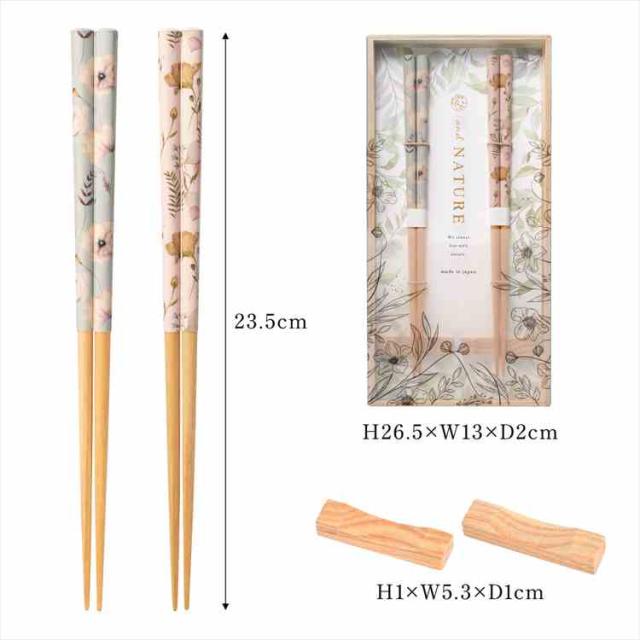 夫婦箸 箸置き セット イシダ and NATURE アンドネイチャー フルール 箸 ハシ 日本製 お箸 ペア箸 天然木 桐箱 おしゃれ 大人 ギフト プレゼント 結婚祝い 記念 夫婦 両親 顔合わせ 贈り物 還暦祝い 金婚式 銀婚式 和風 食器 国産 上質 高級 花柄 母の日 父の日 ISD-631891