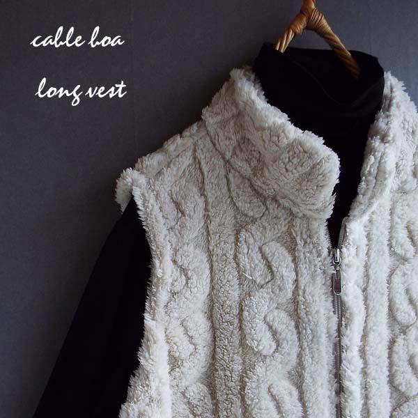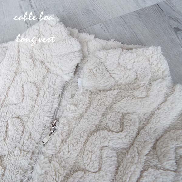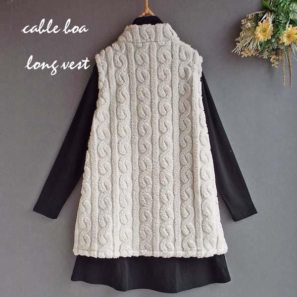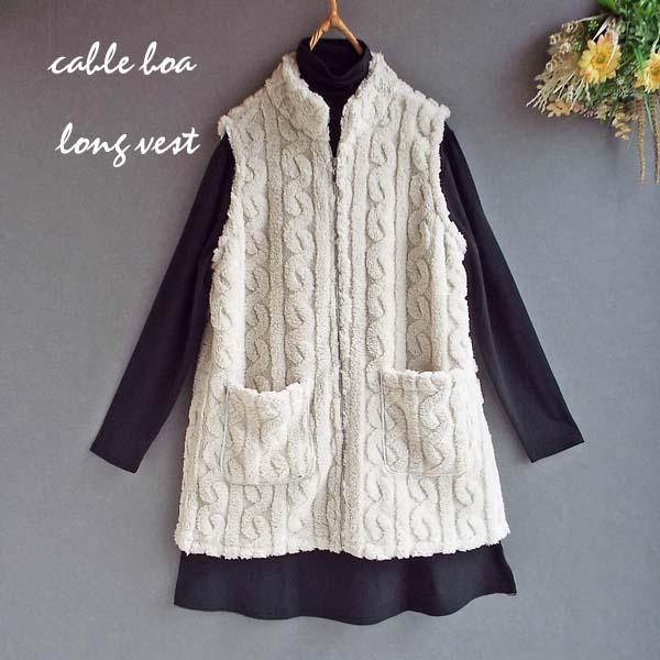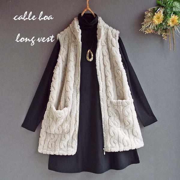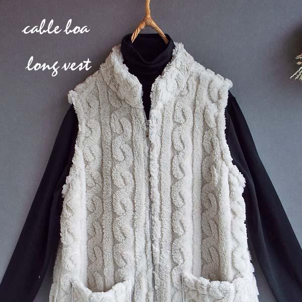 ベスト ケーブルボア ジップ ロングベスト 軽やか ニット前開き ップス 羽織 ゆったりサイズ 30代 40代 50代 60代 秋冬 s3960