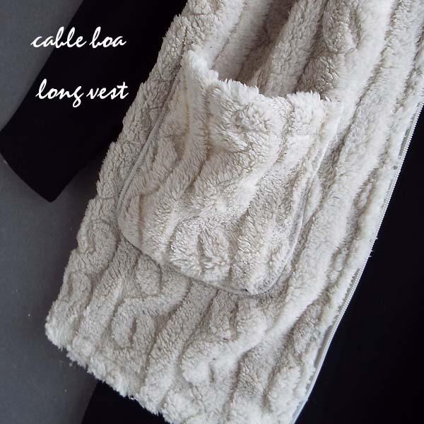 見た目にも暖かな“ケーブル編み風”の縦ラインを施したボアベスト。