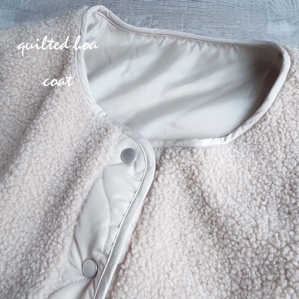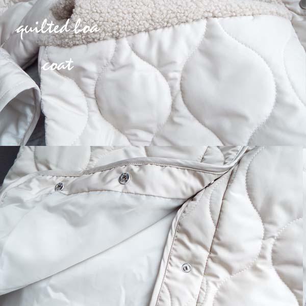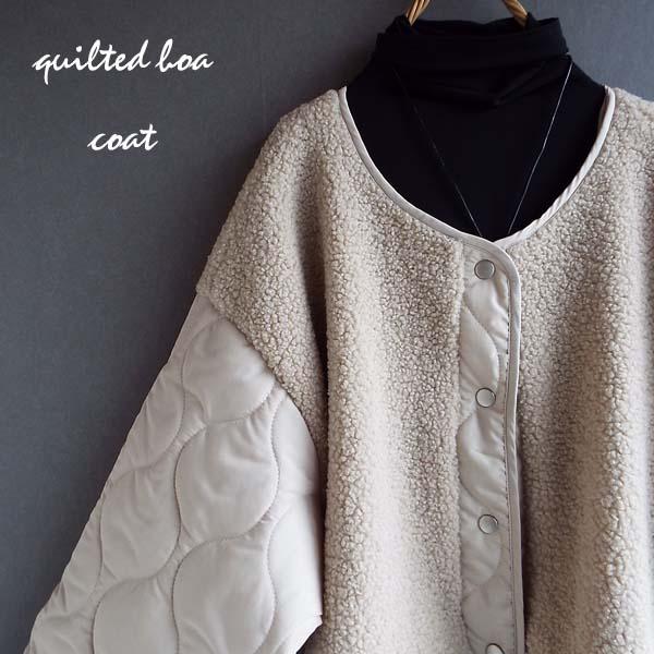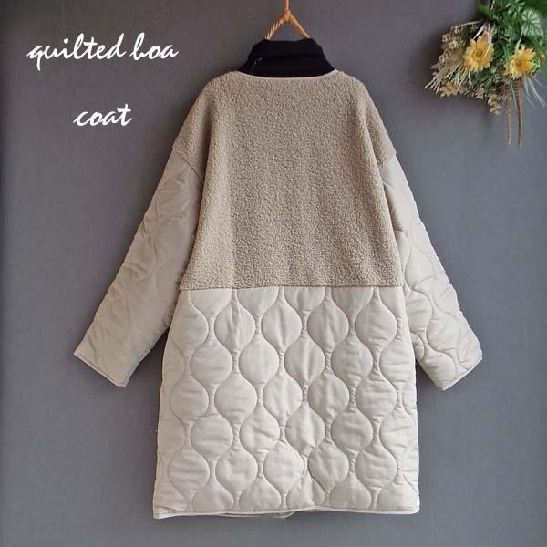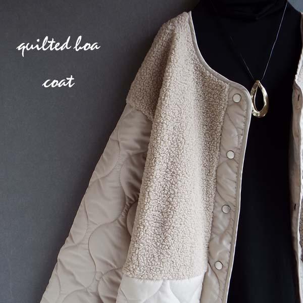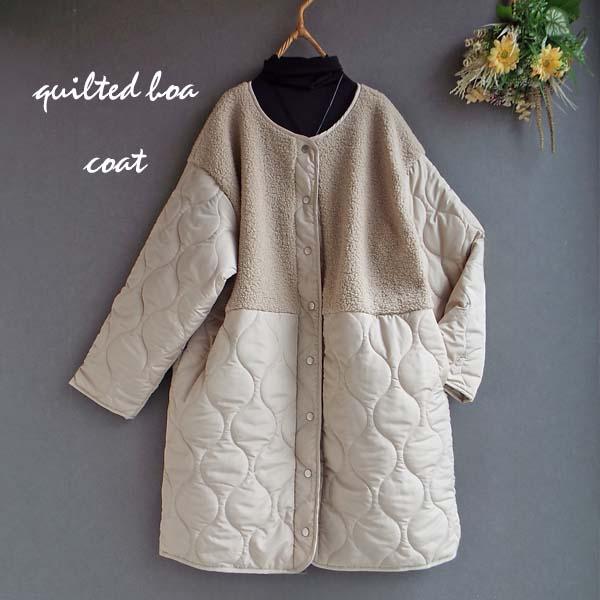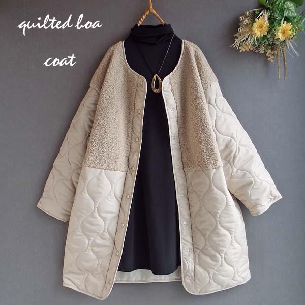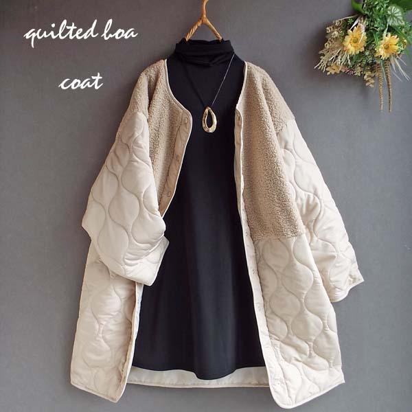 コート レディース ボア ノーカラー 切替 コート アウター ロング 裏ボア キルティング 大人 きれいめ 秋 冬 30代 40代 50代 60代 体型カバー s3976