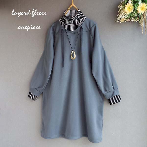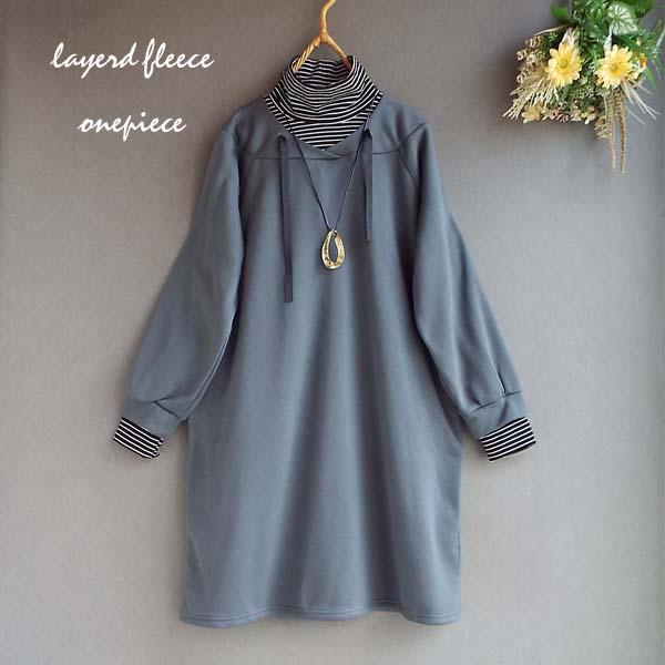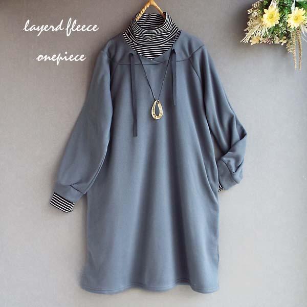 ワンピース レディース クラシック 異素材ドッキング レイヤード風 裏起毛 Aライン きれいめ 秋冬 30代 40代 50代 60代 s3967