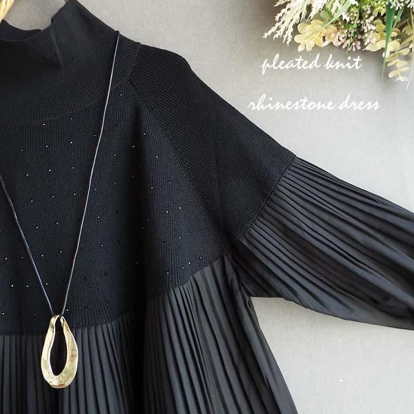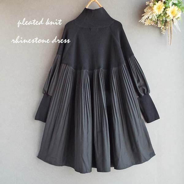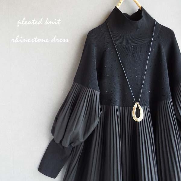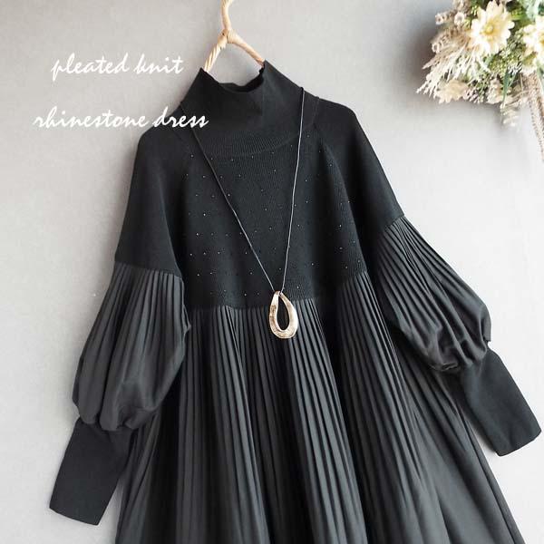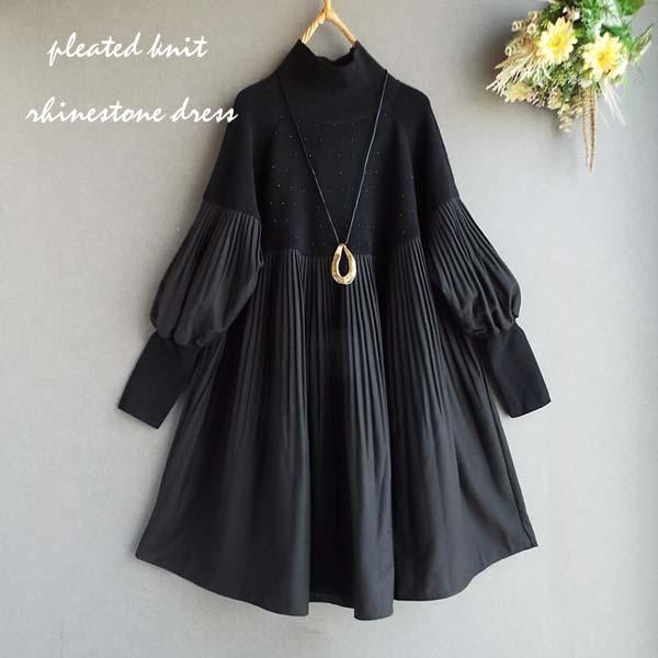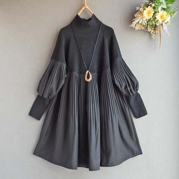 ワンピース レディース 異素材 切替 ハイネック ニット プリーツ ブラウス きれいめ ゆったり 30代 40代 50代 60代 s3947