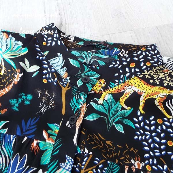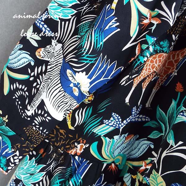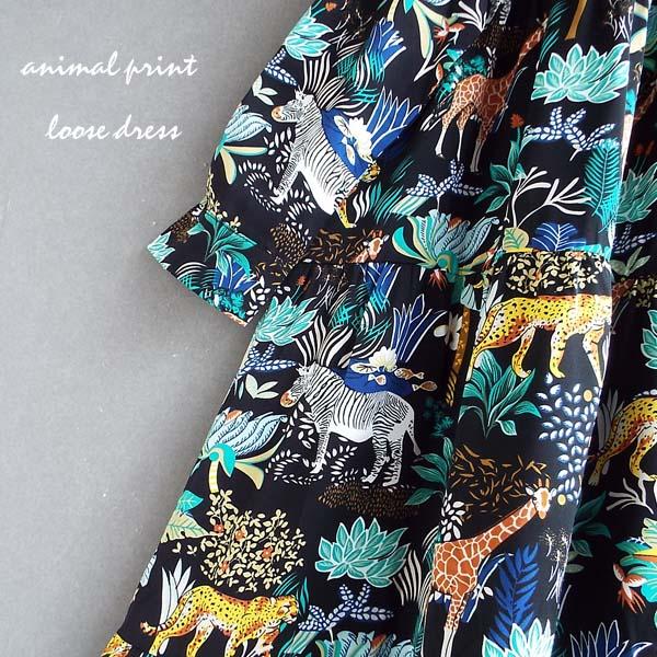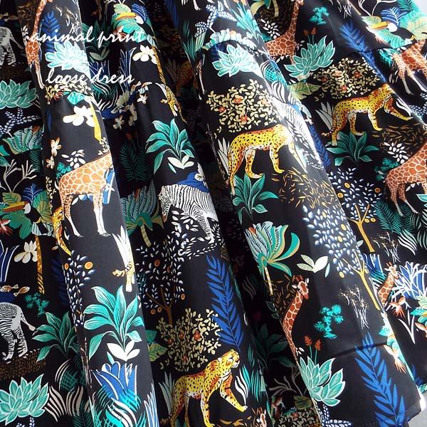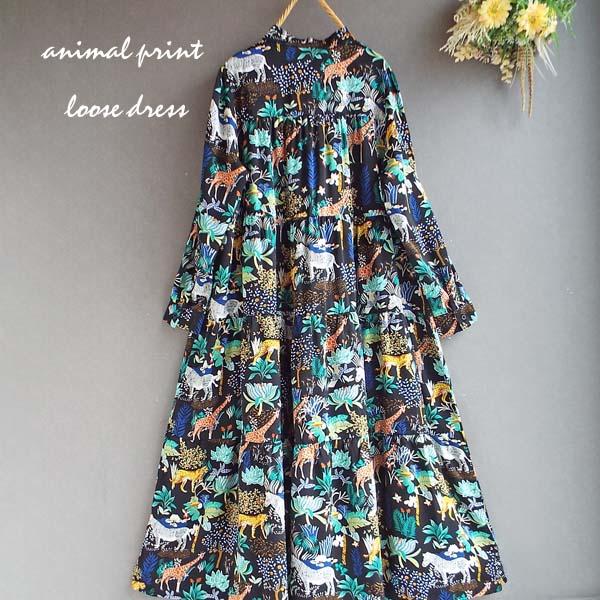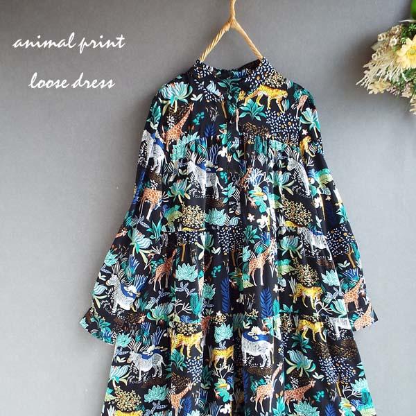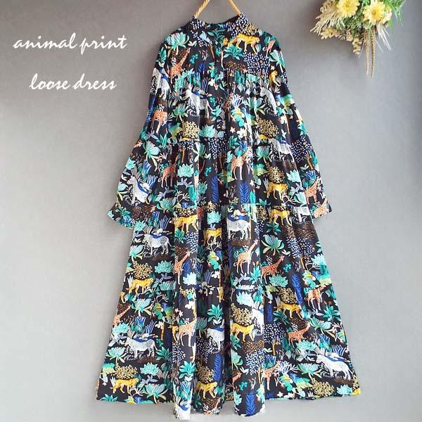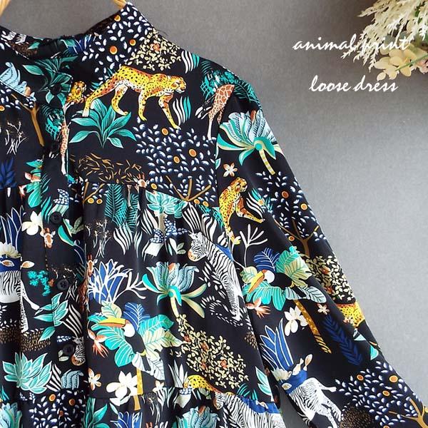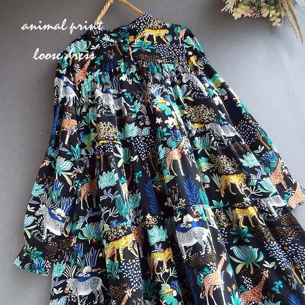 ワンピース レディース アニマル柄 切替 ハイネック フレアー きれいめ ブラウス ゆったり 30代 40代 50代 60代 s3950