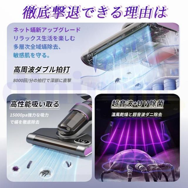 布団クリーナー 強力吸引 ウイルス除去 ダニ退治 除菌 分離設計 紫外線 ダニ退治 寝具 布団掃除機 コードレス 布団掃除機 ダニ除去 埃除去 UVランプ除菌 梅雨対策
