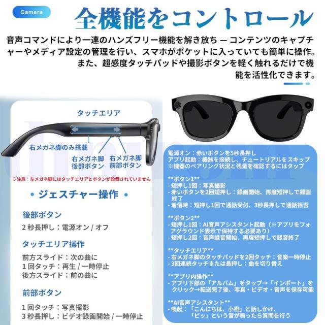 関連キーワード:2025年最新 スマートグラス カメラ付き ai搭載メガネ 翻訳 ai glasses bluetoothメガネ smartglasses 調光レンズ対応 サングラス型イヤホン ブルーライトカット 調光レンズ対応 AI検索 スマートグラス カメラ付き 録画 録音 映像 スマートメガネ iPhone 眼鏡 音楽再生 通話可能 Bluetooth5.3 日本語説明書 近視用 サングラス マイク内蔵 AIワイヤレスメガネ 500W/800W解像度 アプリ記録 高音質