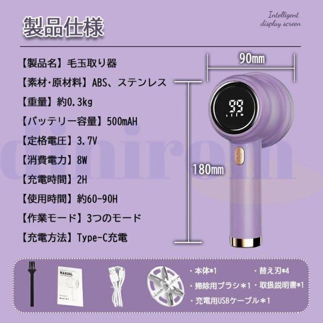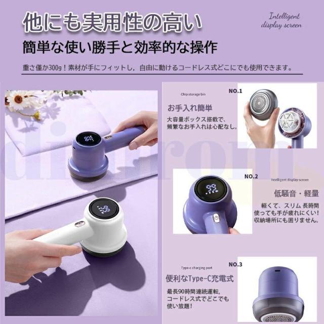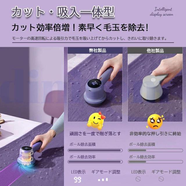 即日発送 毛玉クリーナー 毛玉取り器 電動毛玉取り 毛玉カッター 安全装置 液晶ディスプレイ USB充電 あらゆる洗濯物靴下衣類寝具カーペット パワフルな6枚刃 3段階