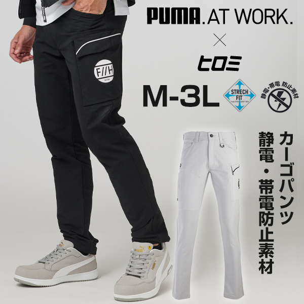 作業ウェアPUMA カーゴパンツ メンズ 作業着 作業服 作業ズボン PUMA WORKWEAR プーマワークウェア ヒロミ コラボ ストレッチ ロゴ 静電気 帯電防止 ポケット 小さいサイズ 大きいサイズ 大容量 ポケット 収納力 伸縮性 ポイント消化