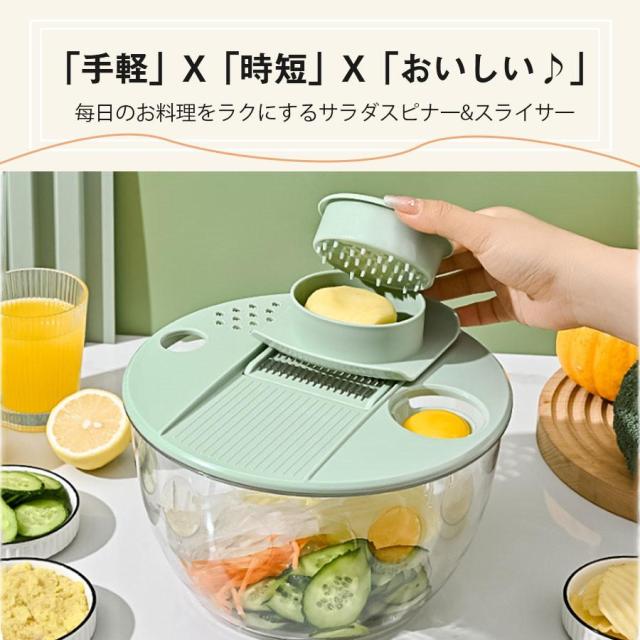 爆買 サラダスピナー スライサー 野菜調理器 スライス コンパクト 保存容器 安全 水切り 千切り 細切り 平切り 簡単 指ガード カッター おしゃれ キッチン
