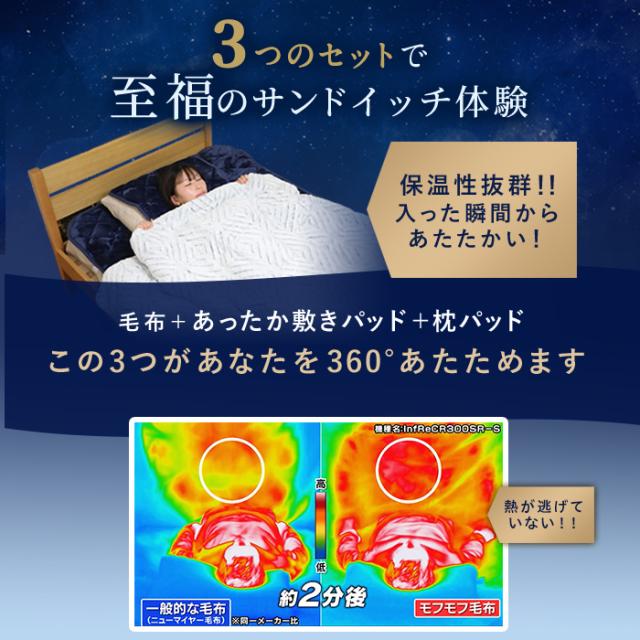 毛布、枕パッド、敷きパッドの3点セット!