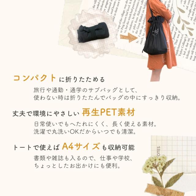 ジョアスタイルオリジナル 2WAYトートバッグ エコ素材 再生ペットボトル使用 洗濯OK 軽量 巾着トート 大容量 通勤 通学 マザーズバッグ