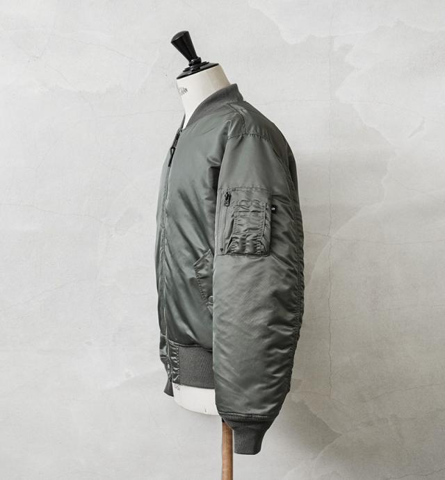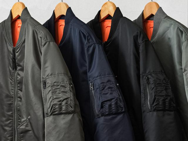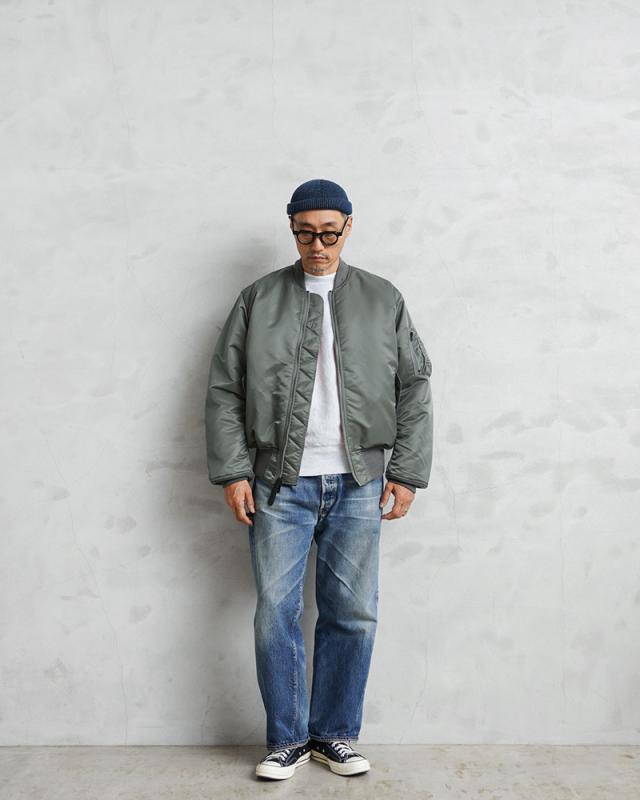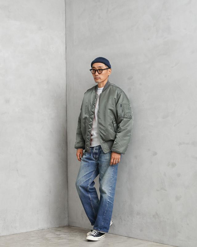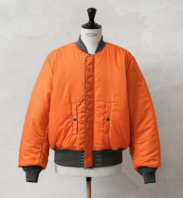 Valley Apparelから、MA-1 フライトジャケットが登場です。MA-1はインターミディエイトゾーン(-10〜10℃)用として1950年代半ばにアメリカ空軍や海軍のパイロットに採用されて以来、7度の仕様変更を行いつつ、1980年代まで使用され続けた傑作中の傑作。リブ仕立ての襟と袖口、斜めにカットされたハンドウォーマーポケット、左上腕部のユーティリティポケットとペンホルダーが特徴的なモデルです。高密度かつ光沢とハリに満ちた「FLIGHT NYLON」を採用し、洗練された丸みのあるシルエットが特徴。袖、襟、裾はリブ仕様となっており、風の侵入を防いで保温効果を高めます。ライニングにはレスキューオレンジカラーで、戦闘機から脱出したパイロットがオレンジ色を表にして着用することでレスキュー部隊に発見されやすいように開発された実用的なリバーシブル対応のディテールも忠実に再現しています。