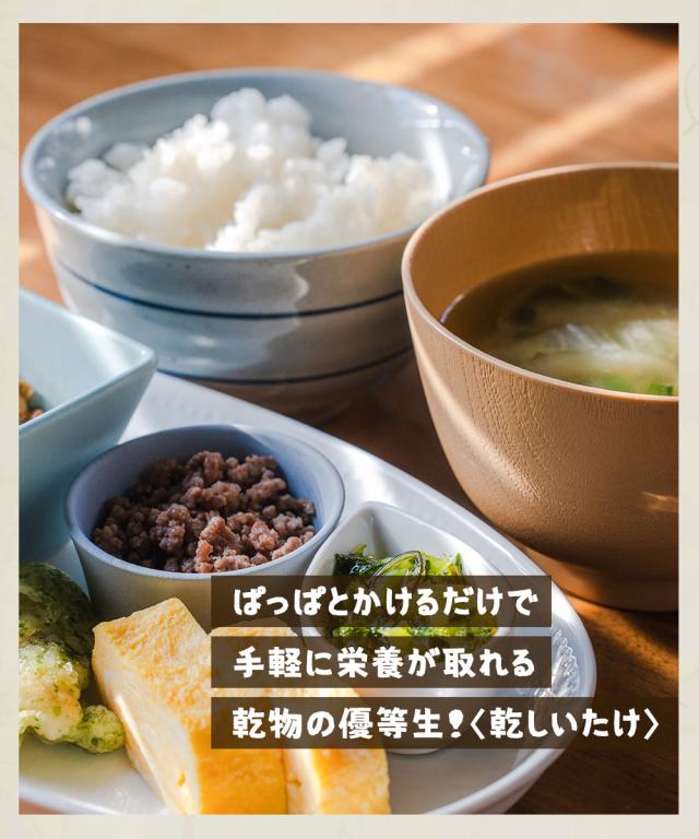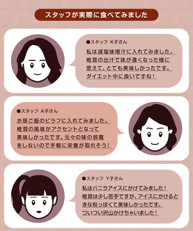 乾燥椎茸を調味料のようにふりかけるだけで使えます。